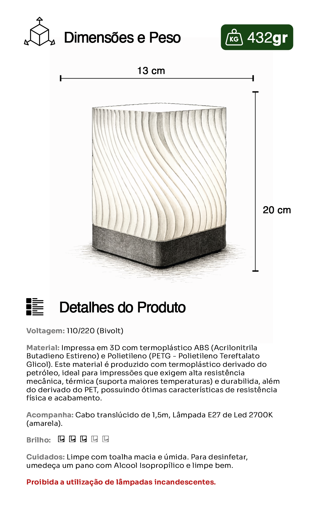 Inspirada no ritmo natural das marés, sua forma fluida cria uma sensação constante de deslocamento visual, como se a peça estivesse em permanente transformação. Ideal para compor salas, aparadores, mesas laterais ou ambientes que pedem um ponto de destaque sofisticado, a Marea Flux equilibra design autoral e funcionalidade, trazendo movimento sem ruído visual.
