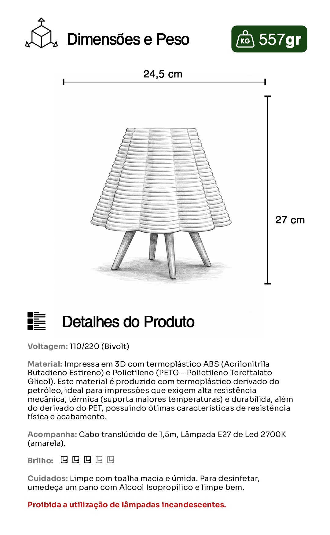 Cada nível do difusor revela uma transição delicada entre sombra e brilho, resultando em uma iluminação quente, acolhedora e profundamente atmosférica. O efeito é quase arquitetônico: a luz não apenas ilumina, ela constrói espaço.